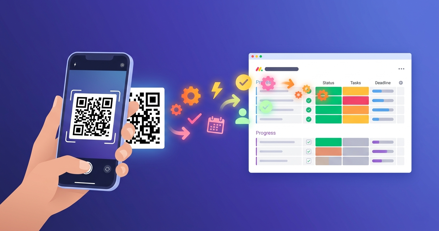 monday.com doesn't do this natively. Plenty of apps generate QR codes, but they just open links or show information. Getting a scan to actually fire an automation? Most fall short.