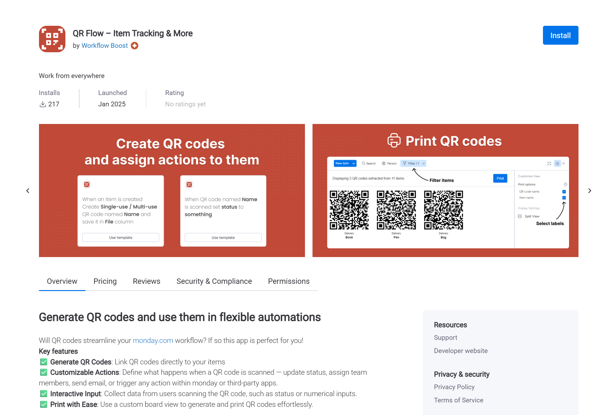 QR Flow makes the connection. Scan a code, trigger an automation. Any automation. Native monday.com recipes, third-party marketplace apps, whatever. The person scanning doesn't need a monday.com account or a special app. Phone camera works.